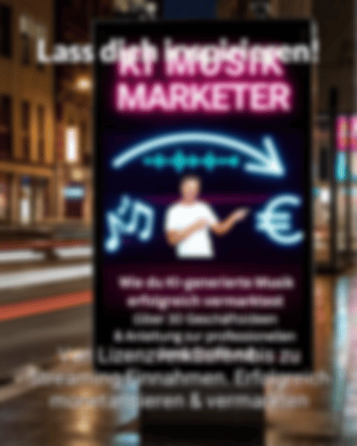 👉 Der Kurs KI Musik Marketer zeigt dir, wie du mithilfe künstlicher Intelligenz eigene Songs entwickelst und daraus ein profitables Online Modell machst. Du lernst, ohne musikalische Erfahrung professionelle Tracks zu erzeugen, verschiedene Stilrichtungen auszuprobieren und deine Ergebnisse gezielt zu vermarkten. Die Inhalte bieten dir zahlreiche Geschäftsideen und erklären, wie du Einnahmen über Lizenzen, Streaming oder digitale Produkte erzielst. Für 4,99 € erhältst du ein kompaktes Training, das dir einen schnellen, kreativen Einstieg ermöglicht – alles, was du brauchst, ist ein Laptop.